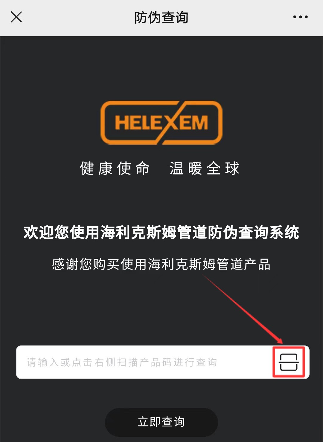 01.打开手机微信,扫描并关注海利克斯姆公众号